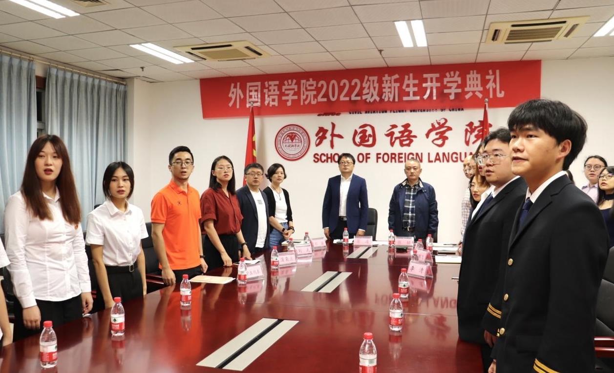秋风送爽,丹桂飘香。为迎接22级新生正式加入中飞院sjb世俱杯官方网站大家庭,sjb世俱杯官方网站于9月15日晚19:00在5510会议室举办了新生线上开学典礼。sjb世俱杯官方网站领导班子成员、各室、系教师代表,学生代表新生班导生等20余人现场参加,22级新生及英语系、翻译系全体教师通过腾讯会议线上参与,会议由sjb世俱杯官方网站党委副书记段震主持。